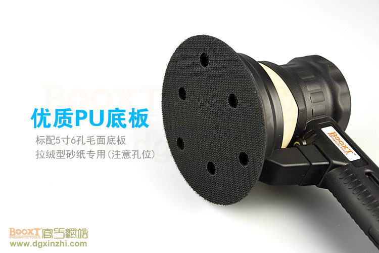 --粗磨偏心度幅度為9.5mm,扭力大,切削能力更大,適合重力打磨。工件一般幅面較大,要求打磨速度快,粗糙的打磨表面,如:玻璃鋼,UV,原子灰等材質(zhì)比較硬的工件,所用砂紙規(guī)格120#以下;