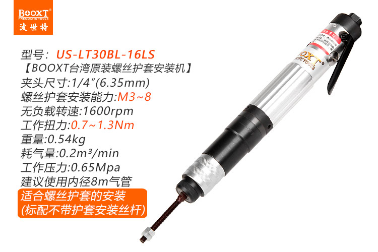 東莞市強勁五金工具有限公司提供臺灣BOOXT波世特品牌氣動工具,氣動螺絲護套安裝機US-LT30BL-16LS廠家直銷,首件享特價。咨詢熱線:4008301980