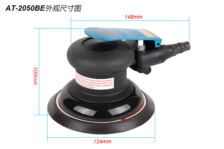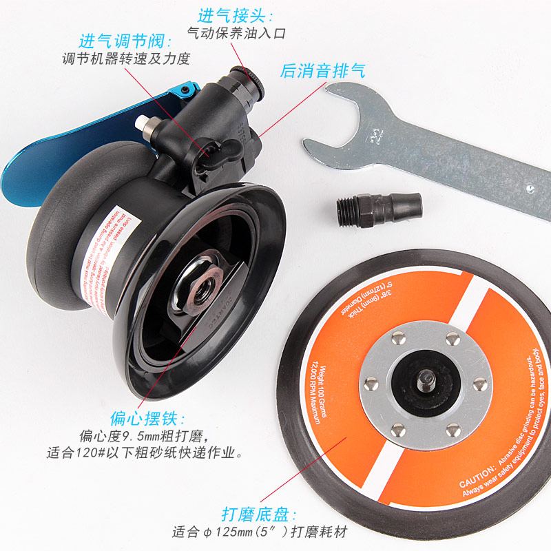 • 產(chǎn)品參數(shù): 底盤尺寸:125mm 空載轉(zhuǎn)速:12000rpm 偏擺直徑:9.5mm 重 量:0.87kg 耗 氣 量:170L/min 噪 音 值:75db(粗磨)